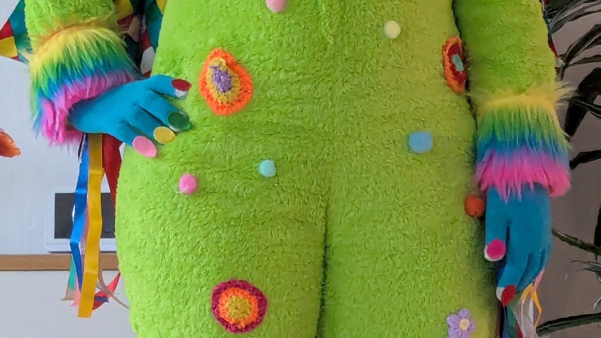 Ik: "Kunnen jullie even een leuke foto maken van mij in mijn zelfgemaakte carnavalspak?"