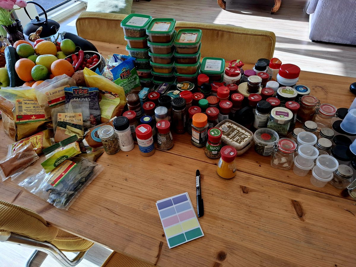 Ik bedacht me vanmorgen dat het weleens goed zou zijn om alle kruiden en specerijen uit te zoeken, waar nodig te labelen en losse zakjes in potjes te doen.