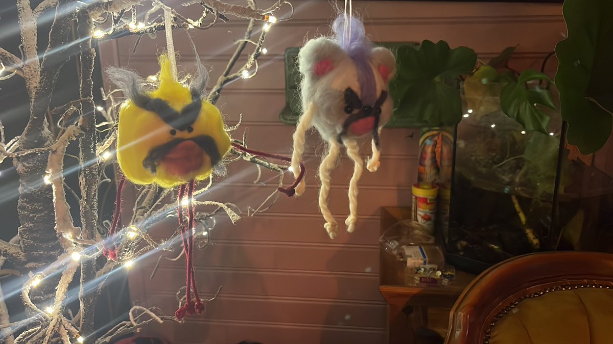 Ik wilde schattige kerstbal diertjes vilten maar dat gaat me slecht af. Dus ik heb ze omgedoopt tot ‘boze beterschaps beesten’.